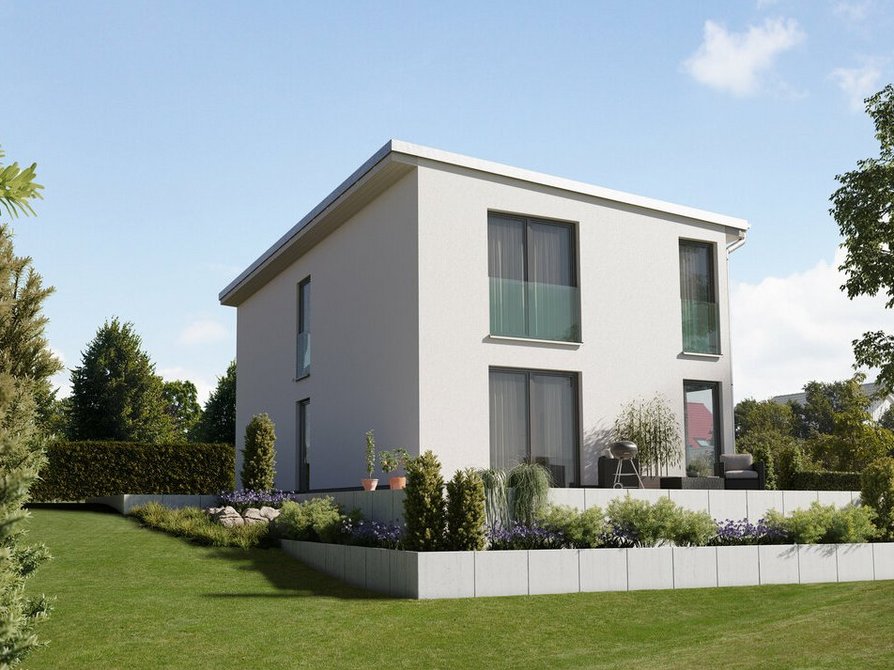 Dank seiner kompakten Außenmaße eignet sich dieses Haus auch für kleine Grundstücke und damit ist das „Aura 136“ optimal für alle, die sich ihren Traum vom Eigenheim in stadtnähe erfüllen wollen. Das flachgeneigte Pultdach vermittelt schlichte Eleganz und ermöglicht ein Wohnen in zwei Vollgeschossen ohne Dachschrägen.